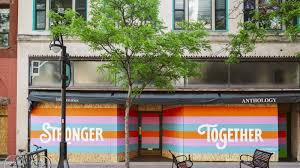Boarded up store front in downtown Madison after the protests related to the murder of George Floyd.